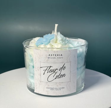 Chez astéria, chaque bougie artisanale est pensée pour créer une ambiance saine et chaleureuse, fabriquée avec soin à partir de cire de soja naturelle.